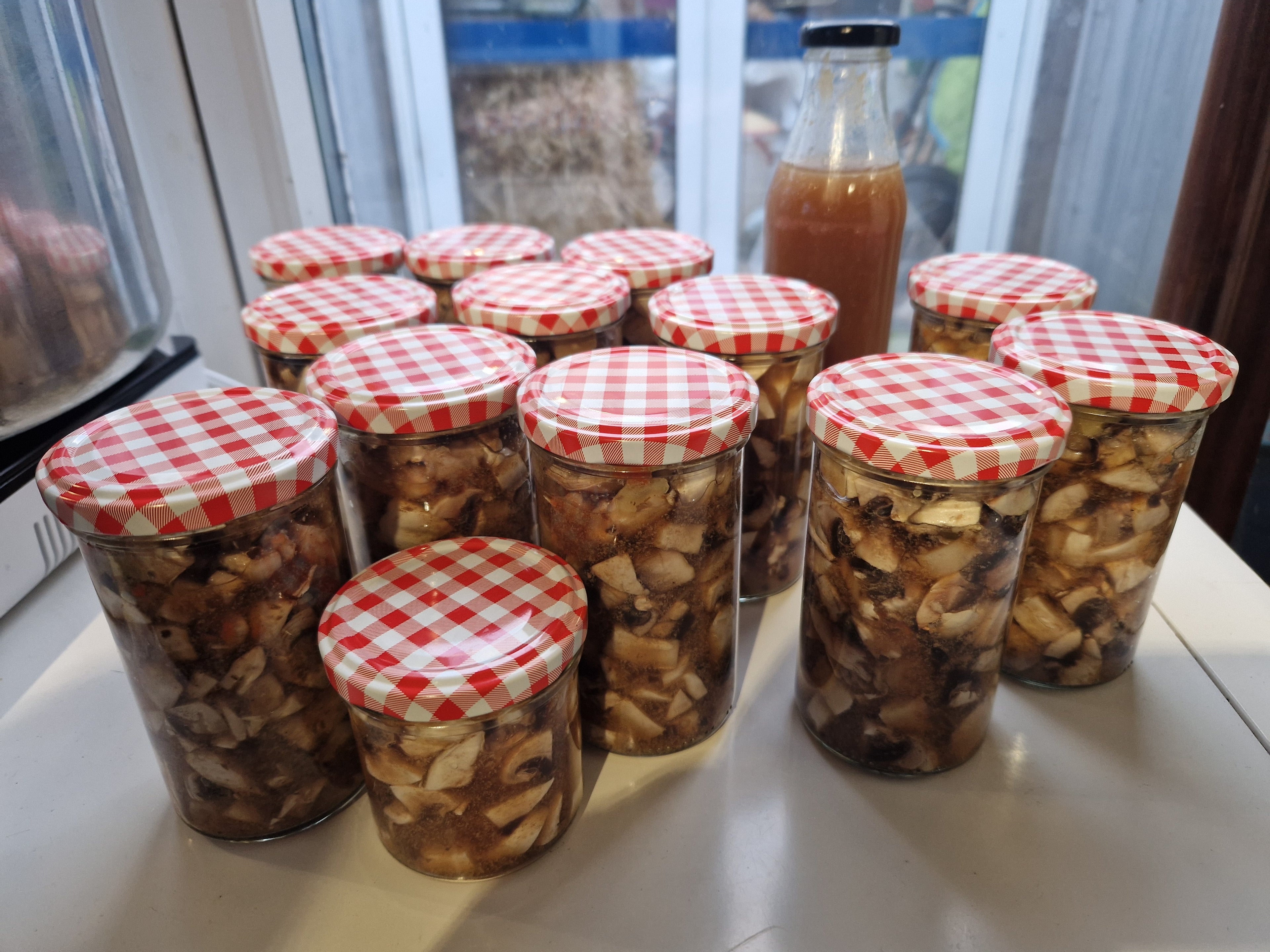 Hjemmelavede glas-champignon som hverken er svampede eller seje, men bare lækre med smag af friske champignon i fyldig champignon fond. Brug dem som base til en champignon sauce eller hæld hele glasset i gryderetten for ekstra smag.