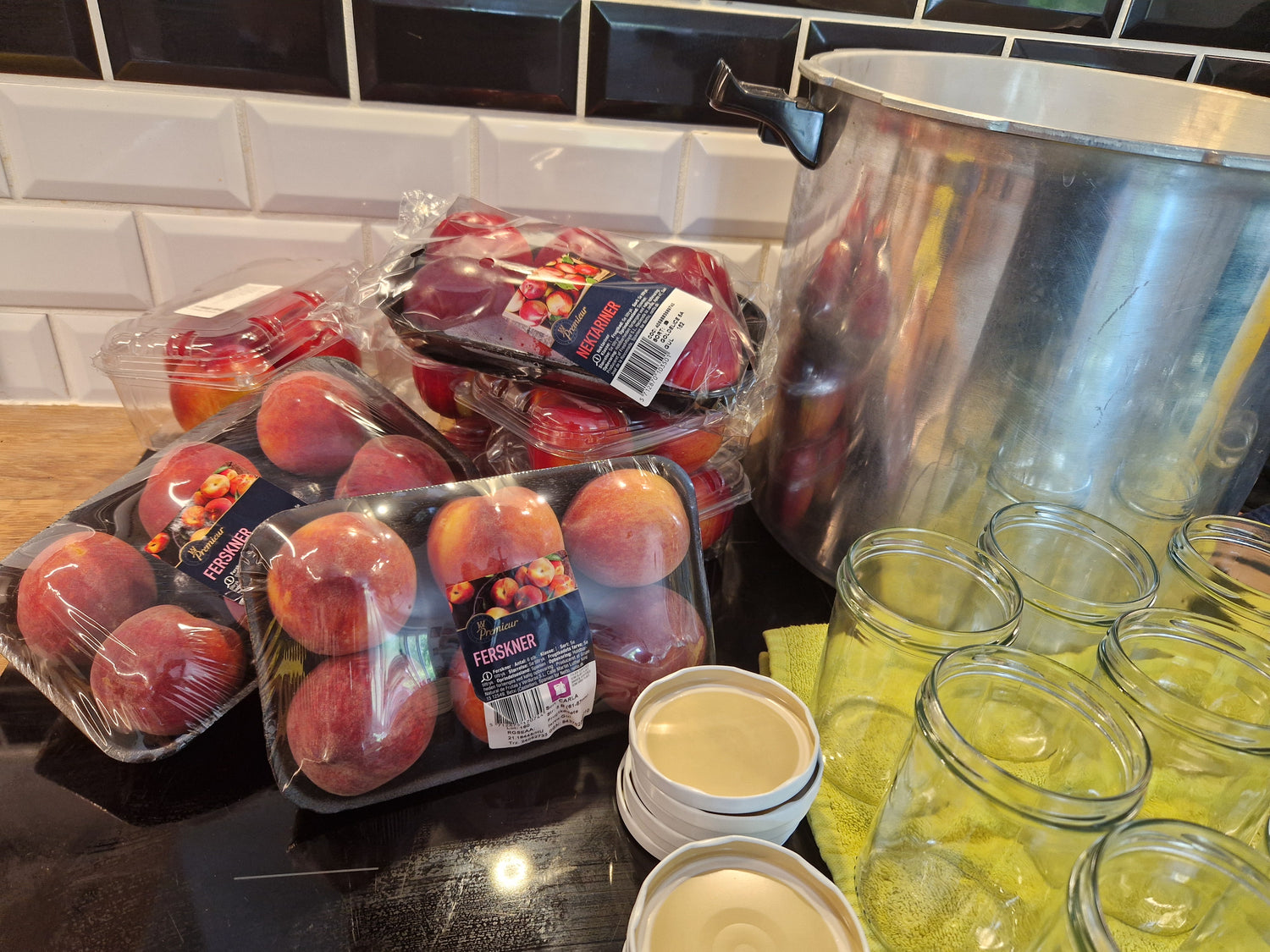 Ferskner og nektariner er lækre at have på glas - ligesom vi ofte har købt dem på dåse til at spise når lysten melder sig. Hjemmelavede glas-ferskner er bare lige niveauet over dåse-ferskner.