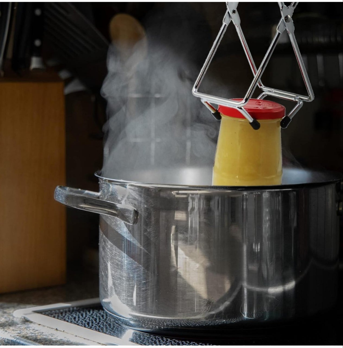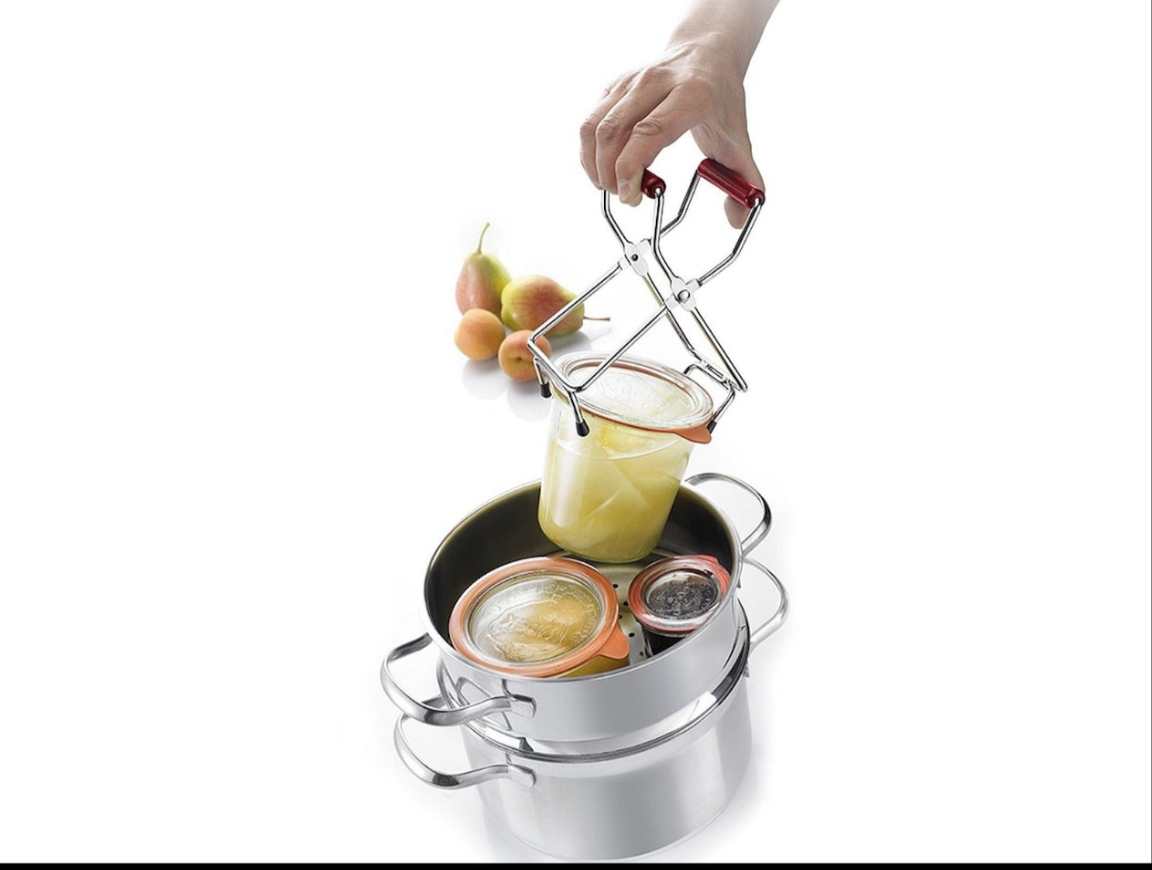 Glastang til at løfte brandvarme glas op ad henkogningsgryden efter endt henkogning.