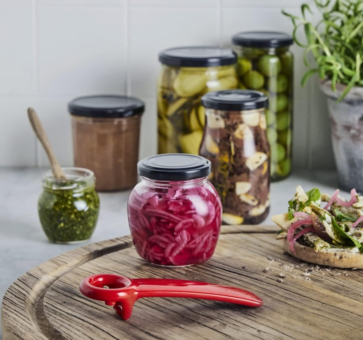 Låg nøgle / åbner til at "pifte" forseglingen på meget stramme låg. Kan også bruges til at åbne låg på flasker.